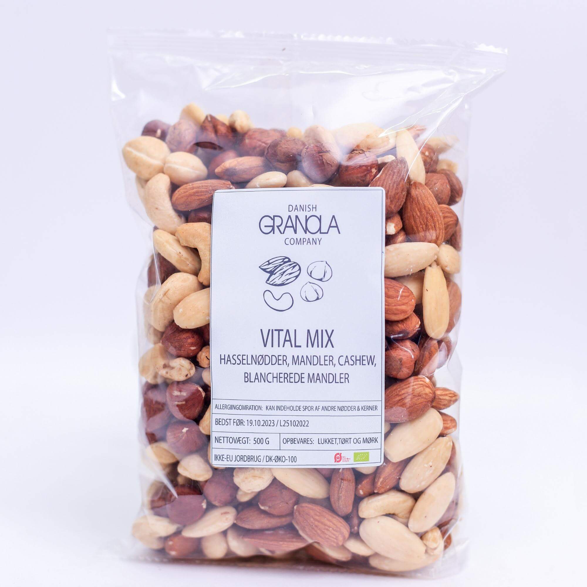 Нашият витален микс е разнообразен асортимент от различни ядки – със сигурност ще има нещо за вашия вкус. Миксът се състои от бланширани и сурови бадеми, сурово кашу и сурови лешници. Ако сте в настроение за лека закуска с микс от всичко, това е перфектното предложение. Открийте разнообразието на микса и комбинирайте най-доброто от всички сортове в една опаковка.