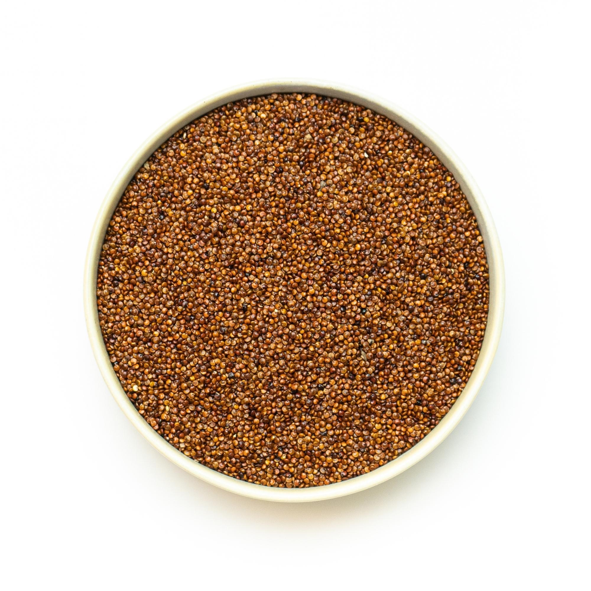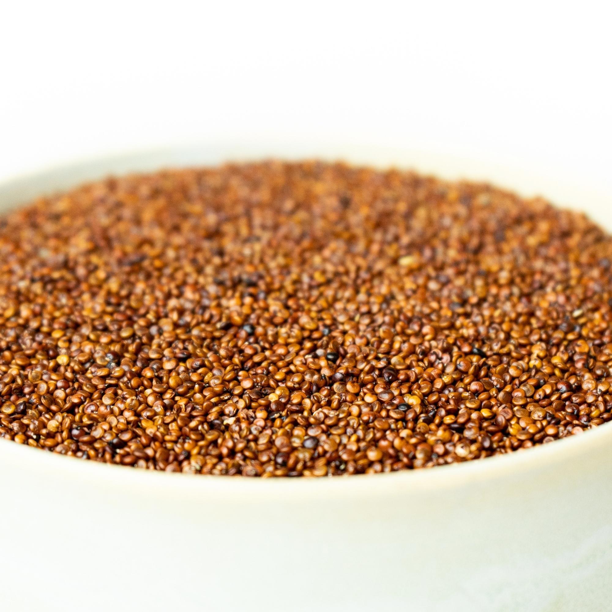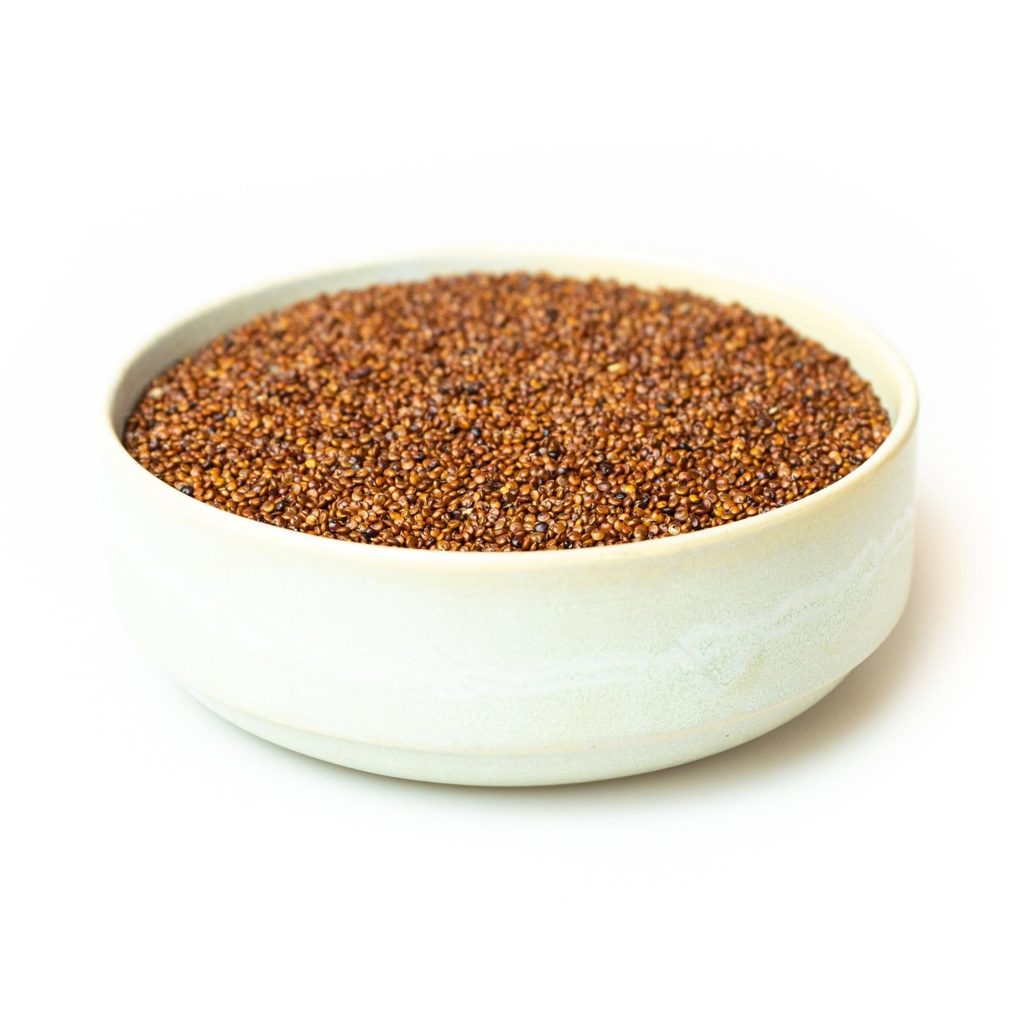 Червената киноа е богата на фибри, витамини, минерали и антиоксиданти. Тя е и отличен източник на протеини и естествено не съдържа глутен. Неварените семена от червена киноа са плоски, овални и хрупкави. Когато се сварят, те се надуват и образуват малки топчета, подобни по форма на кускус.